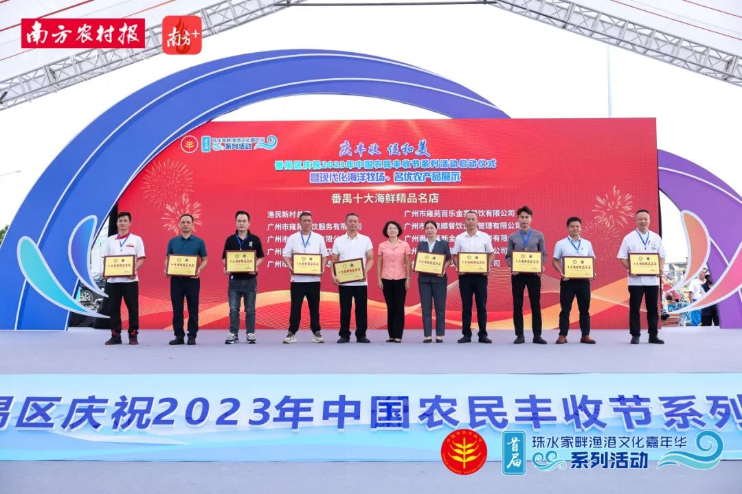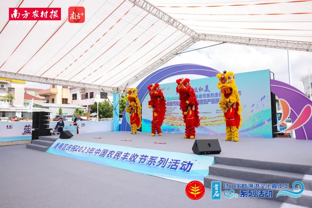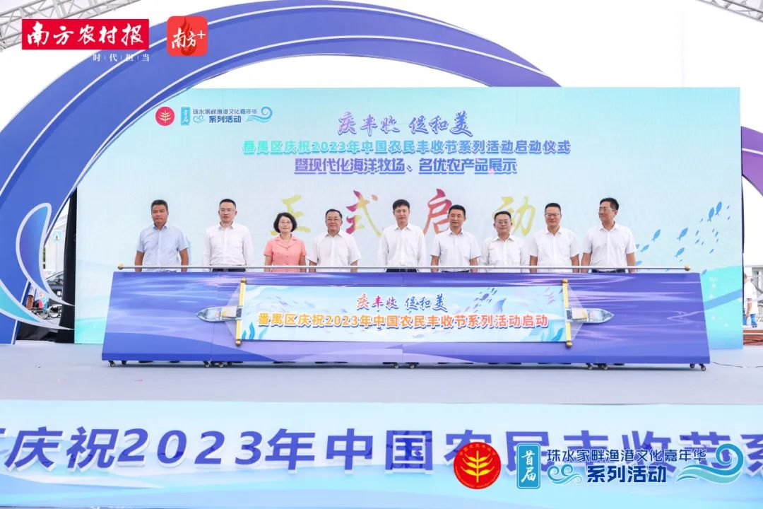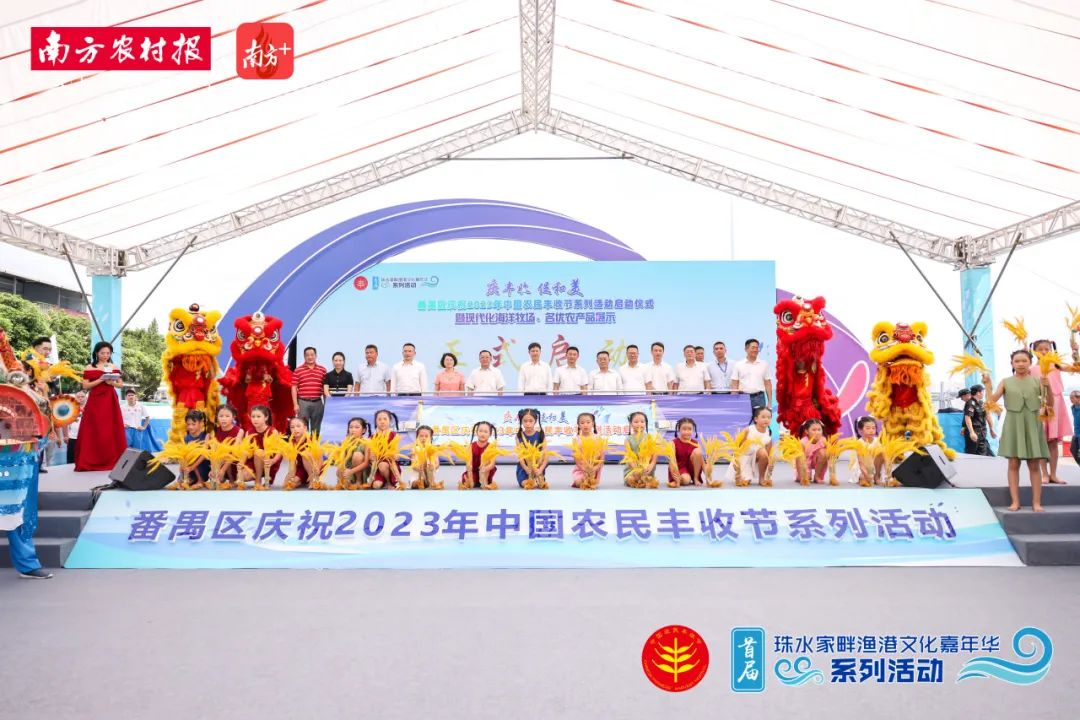 9月25日,番禺區“慶豐收,促和美”2023年中國農民豐收節系列活動在石樓鎮蓮花山漁港碼頭舉行,現場熱鬧非凡。在啟動儀式上,我們不僅欣賞到沙涌“鰲魚舞”這一歷史悠久的民間藝術瑰寶,還看到了近40家企業的海洋牧場裝備、名優農產品等豐富多樣的展品。
